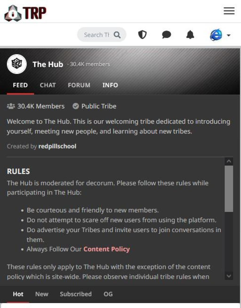 These rules only apply to The Hub with the exception of the content policy which is site-wide. Please observe individual tribe rules when visiting other tribes.