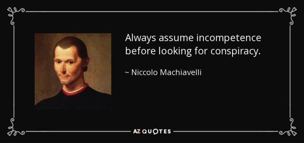 ”Always assume incompetence before looking for conspiracy.”