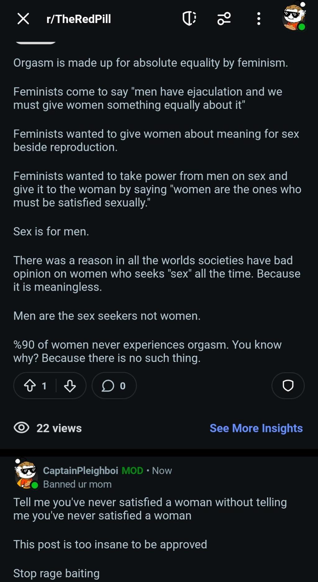 Read More...the vast majority of men populating red pill space, or creating content, are not red pill.