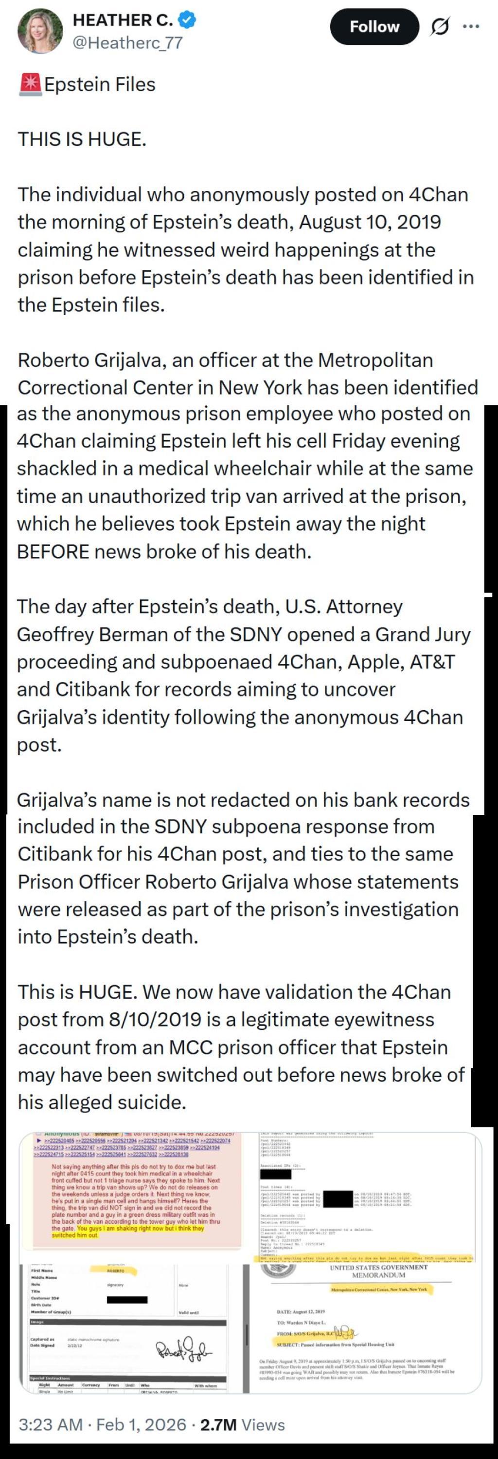 Glad to hear. As I've said previously, everyone seems to be distracted with prominent figures (Trump, Andrew etc.) Which while important, given their positions, I think it's ultimately a distraction from the wider conspiracy.