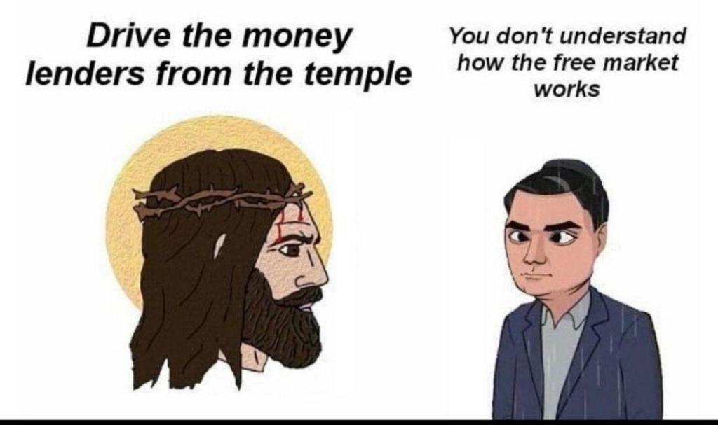 @carnold03 @carnold03 I thought the problem with the money changers was that they had a closed market. The temple only accepted the temple shekel, which was of no use anywhere else because it was actually underweight for the price sold.