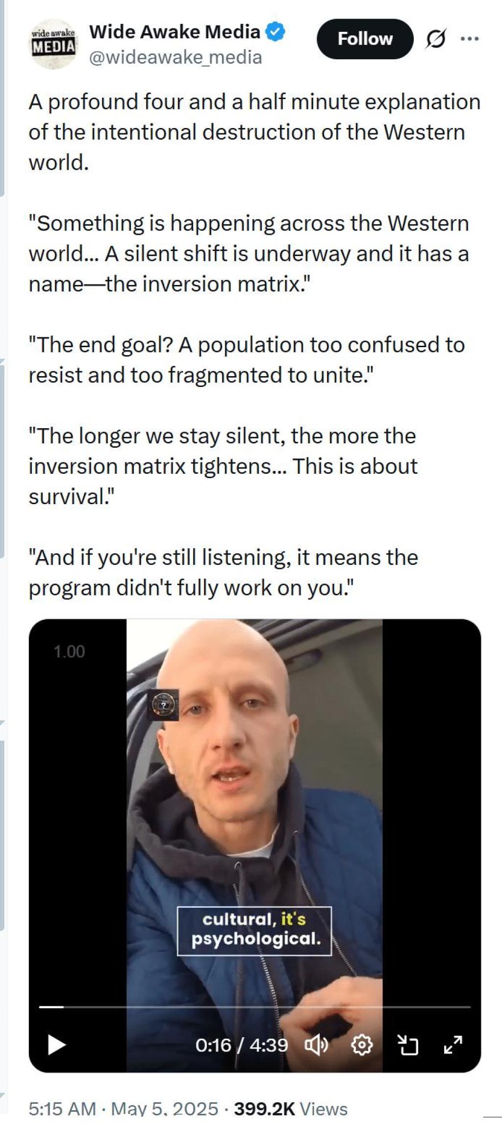 #2025 #InversionMatrix #WideAwake #Media #Video #TwitterX #Clown #World #US #America #SpiritualWarfare #PsychologicalWarfare #UnrestrictedWarfare #Demoralization #IdeologicalSubversion #CultureWar #EconomicWar #BiologicalWarfare #KineticWarfare #Intelligence #Information #Gathering #Espionage #Indoctrination #Coercion #Brainwashing