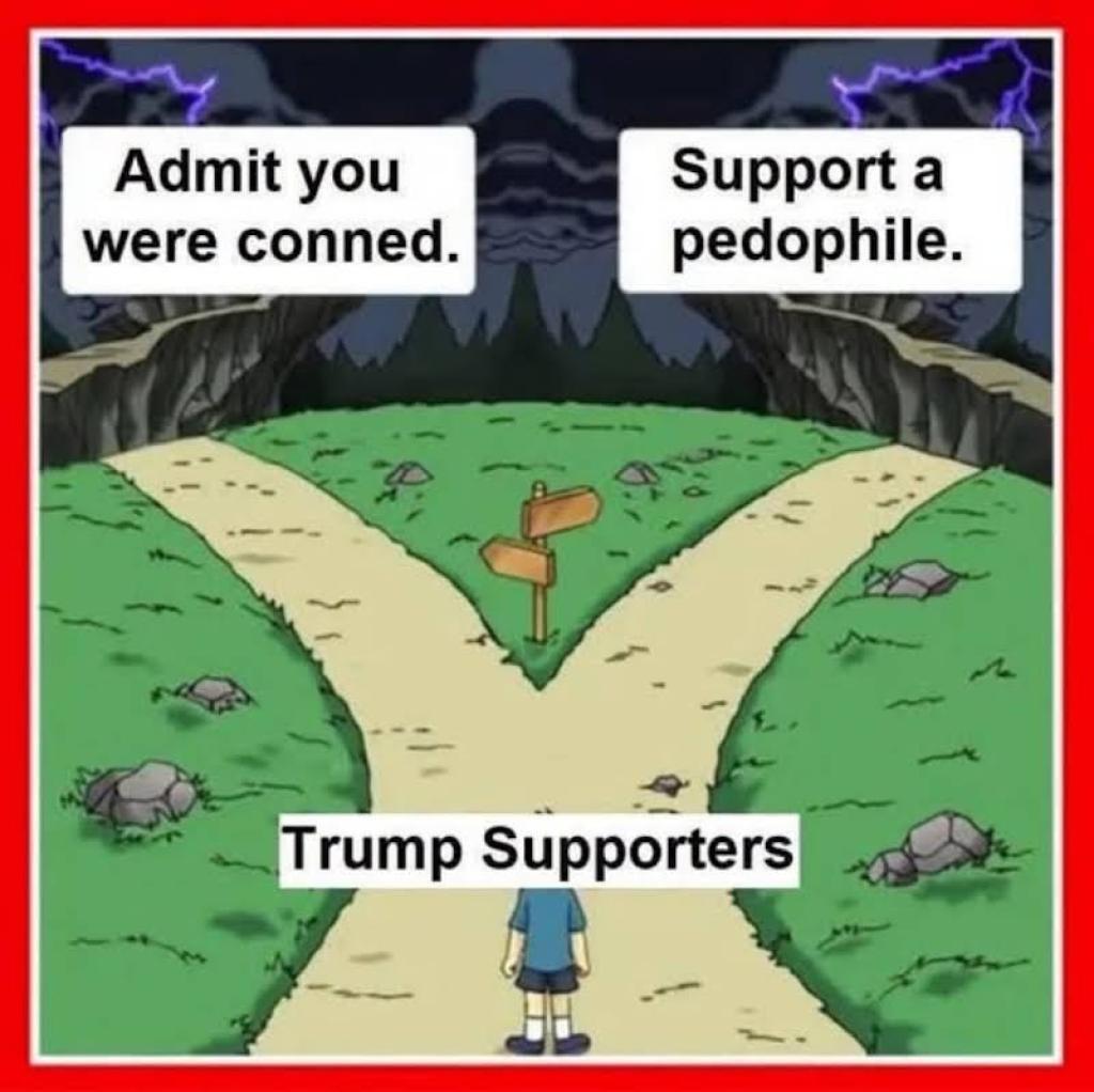 It seems like the EASIEST position in the world to agree with! "I stand against child rape, murder, trafficking, and the use of these to manipulate world Governments on a massive scale through Kompromat and bribery!" Democrats (of which I am not one) for all their faults, have no problem saying loud and clear, "I don't care WHO gets caught- FULLY investigate the Epstein Files, and prosecute the monsters committing these crimes against humanity with full force of law." Independents have no problem saying this loud and clear. Young Republicans, and non-Boomer ones (who only get their news from Fox), also show no problem saying this loud and clear.